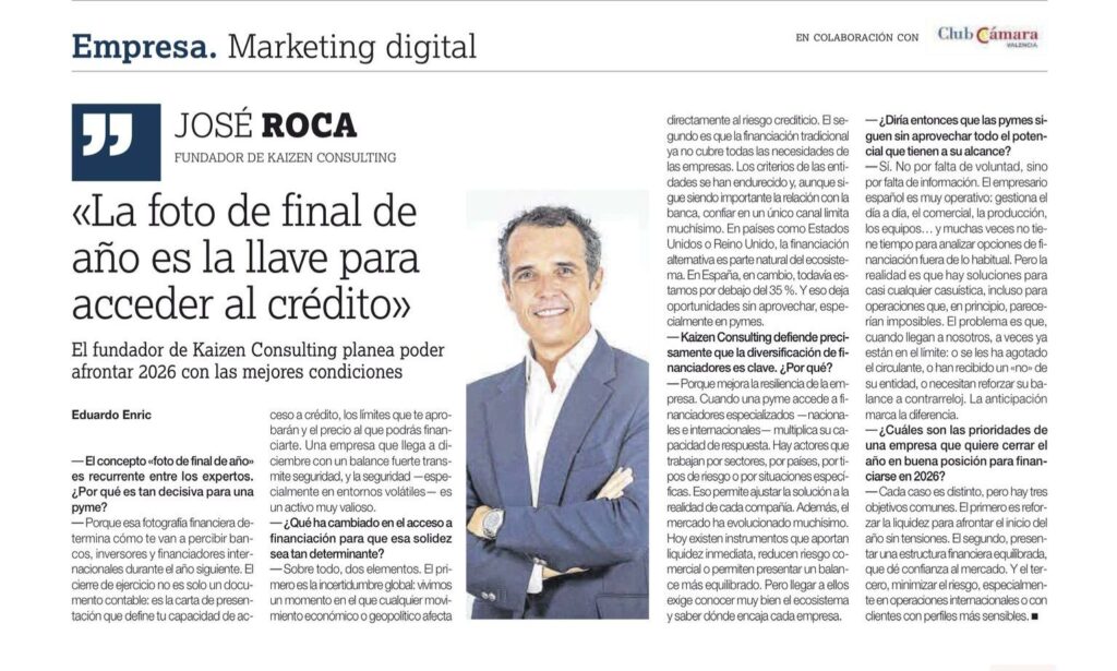Our founding partner, José Roca, has been one of the featured voices in the Empresa supplement of Levante-EMV, where he addresses one of the main challenges many SMEs face today: access to finance in an increasingly demanding and selective economic environment.
